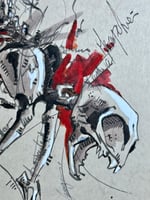 Original handmade artwork created with pen, ink, and alcohol markers on letter paper, framed in wood and glass.