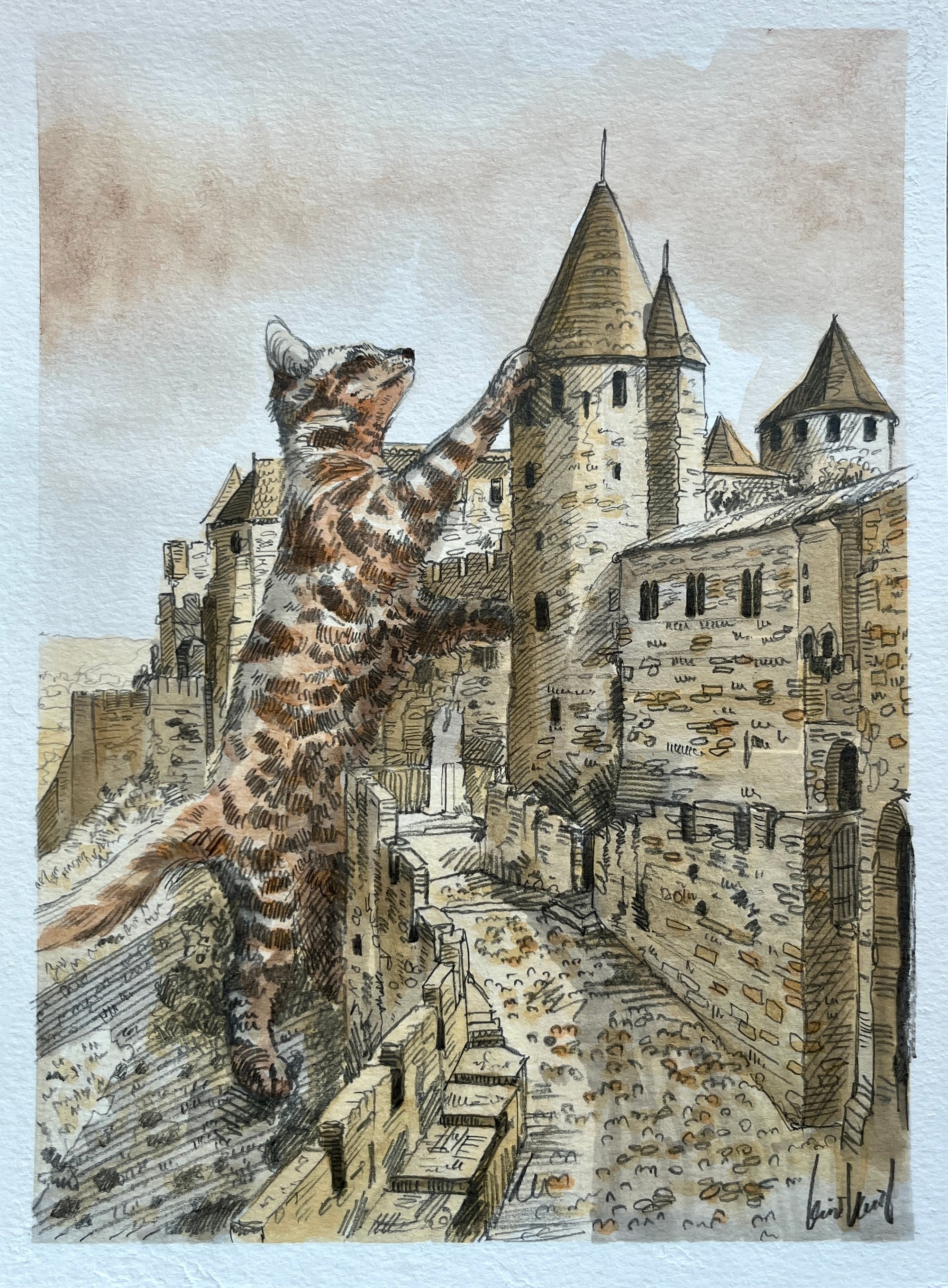 Le Chat sur les remparts de Carcassonne (Œuvre originale)