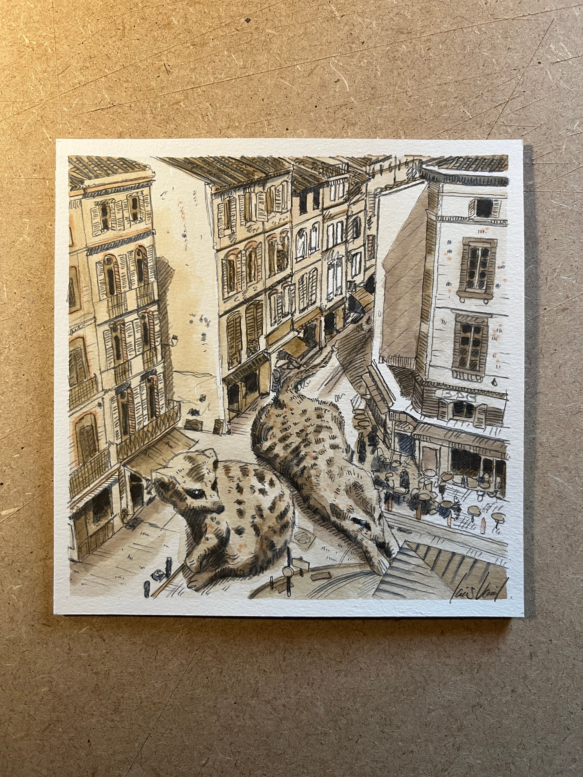 ° Grande illustration 155,00 € (40x30cm ou carré 30x30cm)