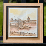 Original handmade artwork in watercolor, pencil, and alcohol marker with glass ans wooden frame.